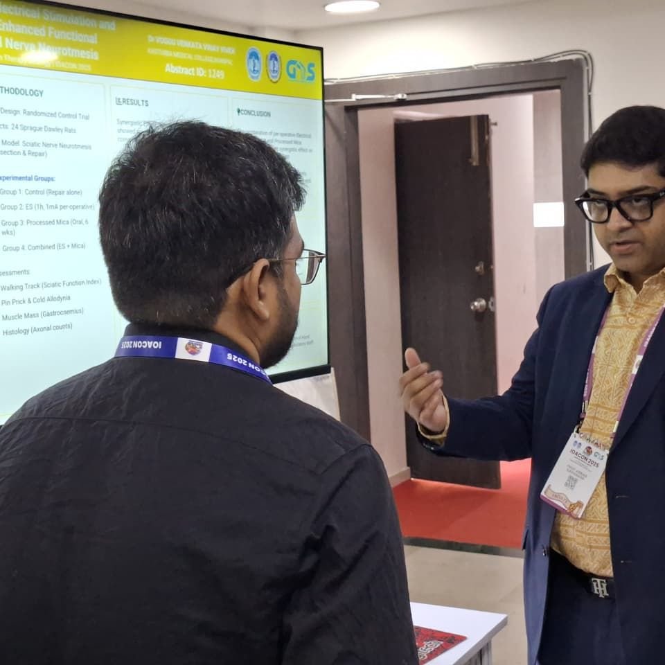 Annual conference of the Indian Orthopaedic Association where I was invited as a faculty member for a workshop, a CME, and the main conference. In the workshop, we conducted a session on “Supra patellar Nailing” for all my juniors. In the CME, I was a panelist in the arthroscopy session. At the main conference, I delivered a lecture on “Current Advances in Pain Management.” I also served as a judge for the poster presentation session and the “Gold Medal” session. Overall, it was a very successful academic event that has been praised by orthopedic surgeons all over India.